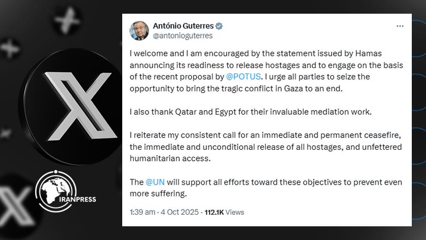 غوتيريش عبّر عن ارتياحه لموقف الحركة من خطة ترامب، واعتبره خطوة إيجابية.