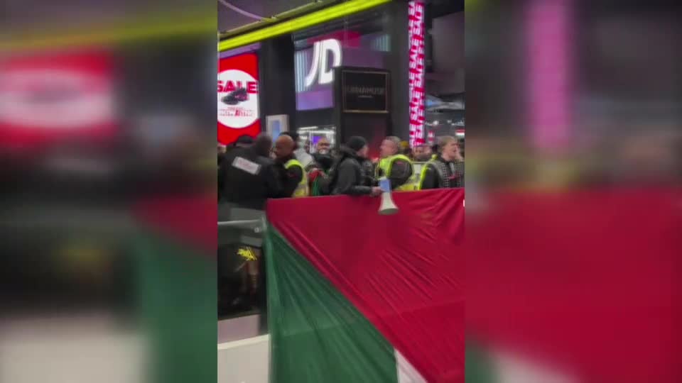 إيران برس - أوروبا: تفاصيل الخبر) رفع المحتجون أعلامًا فلسطينية كبيرة داخل المراكز التجارية المزدحمة، مرددين شعارات مثل "الحرية لفلسطين" و"العار على داعمي إسرائيل".