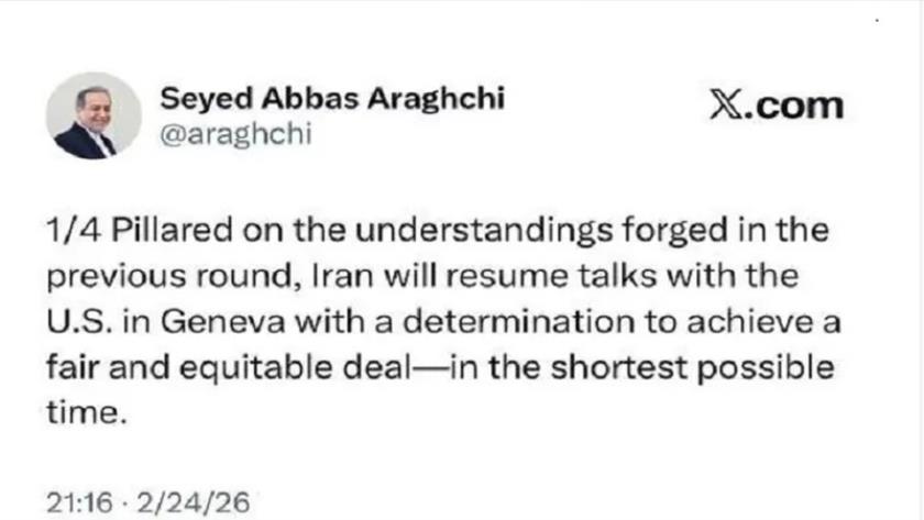 إيران برس - إيران: تفاصيل الخبر) في تغريدته التي نشرها اليوم الأربعاء، أوضح عراقجي أن إيران تسعى لتحقيق نتيجة إيجابية في أقرب وقت ممكن، مشيرًا إلى أن المواقف الأساسية لإيران واضحة: "لن نسعى لتصنيع أسلحة نووية، ولكننا نتمسك بحقنا في استخدام التكنولوجيا النووية السلمية لصالح شعبنا." واعتبر أن هذه لحظة تاريخية يمكن من خلالها الوصول إلى اتفاق غير مسبوق يعمل على تلبية المخاوف المتبادلة وتحقيق المصالح المشتركة.