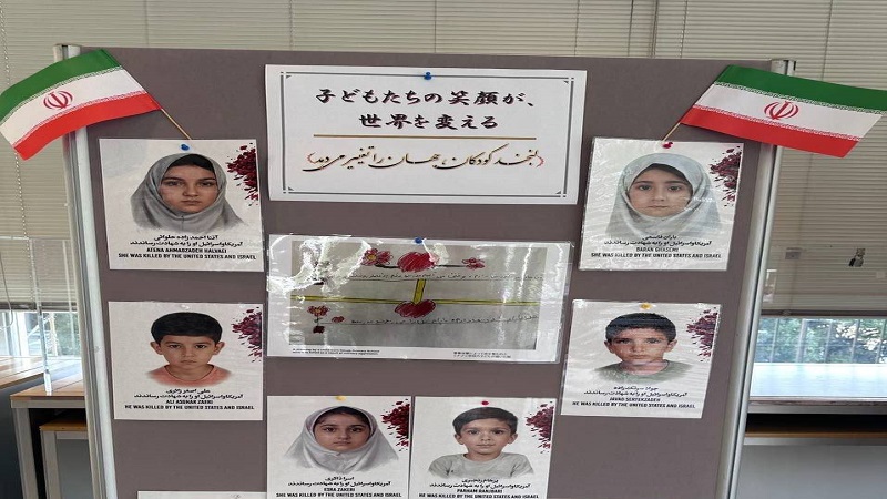 قالت ممثلة جمعية ’’إيراننا‘‘ السيدة جعفر زادة في افتتاحية المعرض الذي تستمر فعالياته لمدة أسبوع، إن الأطفال الذين ترون صورهم هنا كانت لكل واحد منهم أحلام دُفنت مع أجسامهم الضعيفة في قصف مدرستهم بصواريخ توماهوك الأمريكية.