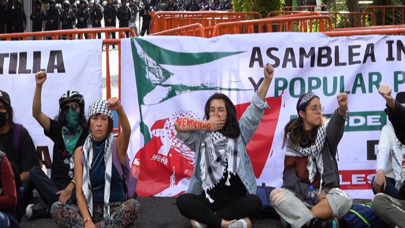نظّم عدد من الطلاب في المكسيك وقفة احتجاجية صامتة أمام سفارة الكيان الإسرائيلي في العاصمة مكسيكو سيتي، مطالبين بالإفراج الفوري عن النشطاء المعتقلين من "أسطول الصمود"، داعين حكومة بلادهم لقطع العلاقات الدبلوماسية مع الاحتلال الإسرائيلي.